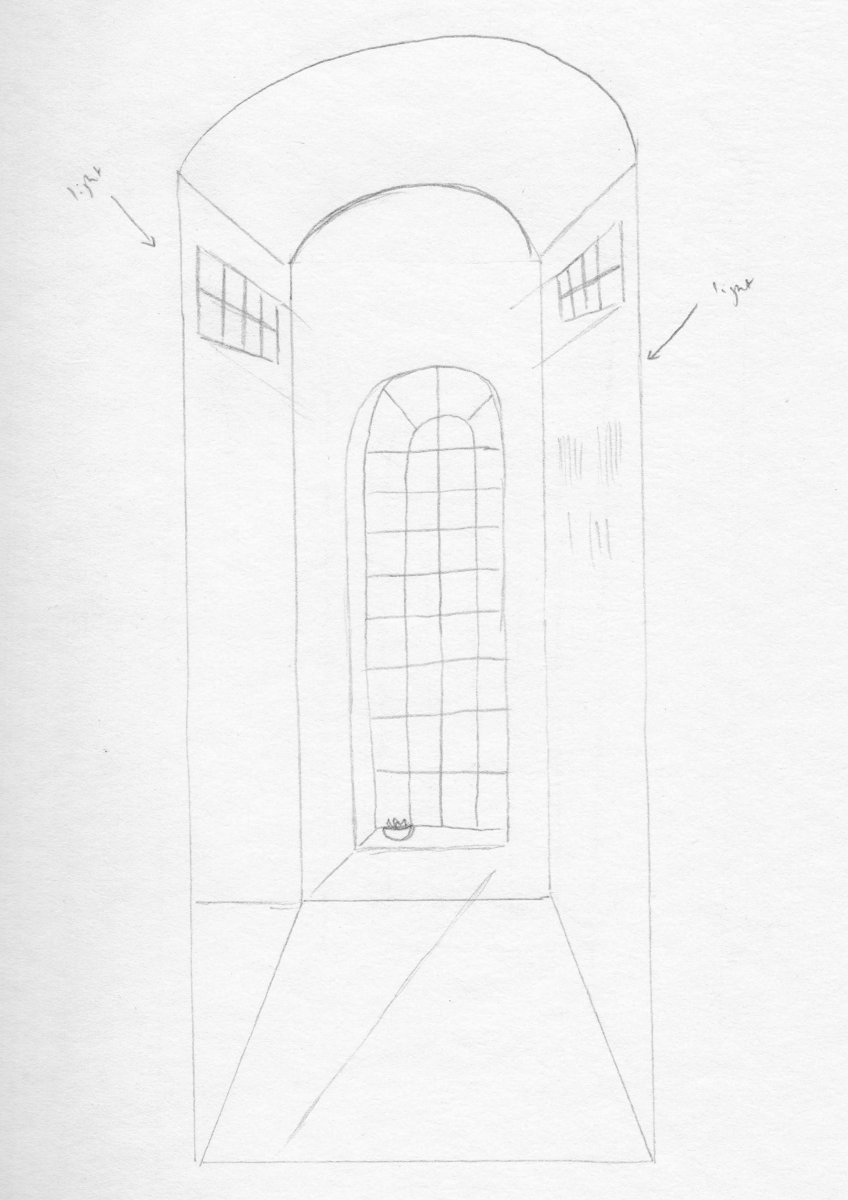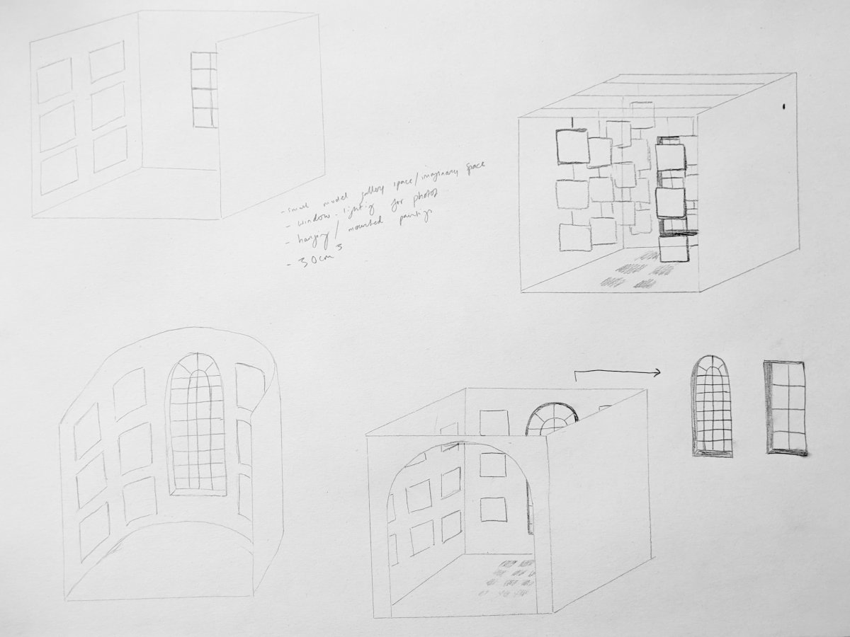 For my outcome, I wanted to create an abstract space where I can display the paintings. I have started designing ideas for a miniature model of what this space could look like; I really want to emphasise light and colour, so I have been considering how I could use windows and corridors to cast different shadows.