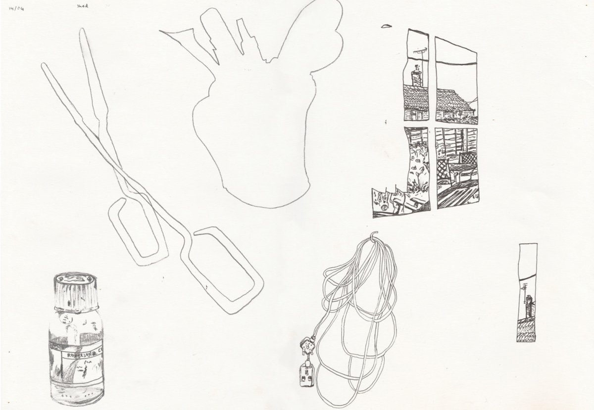 For this week’s drawing task, we had to draw negative space in an area of our house. Initially, I decided to draw objects in my Mum’s pottery studio in the garden. I started to draw the shapes of pots of tools and objects, and then moved to drawing the view out of the window. I really like these window drawings, I think mainly because I prefer to draw the detail into shapes, but also because they feel more reflective of the environment and the mood I was in.